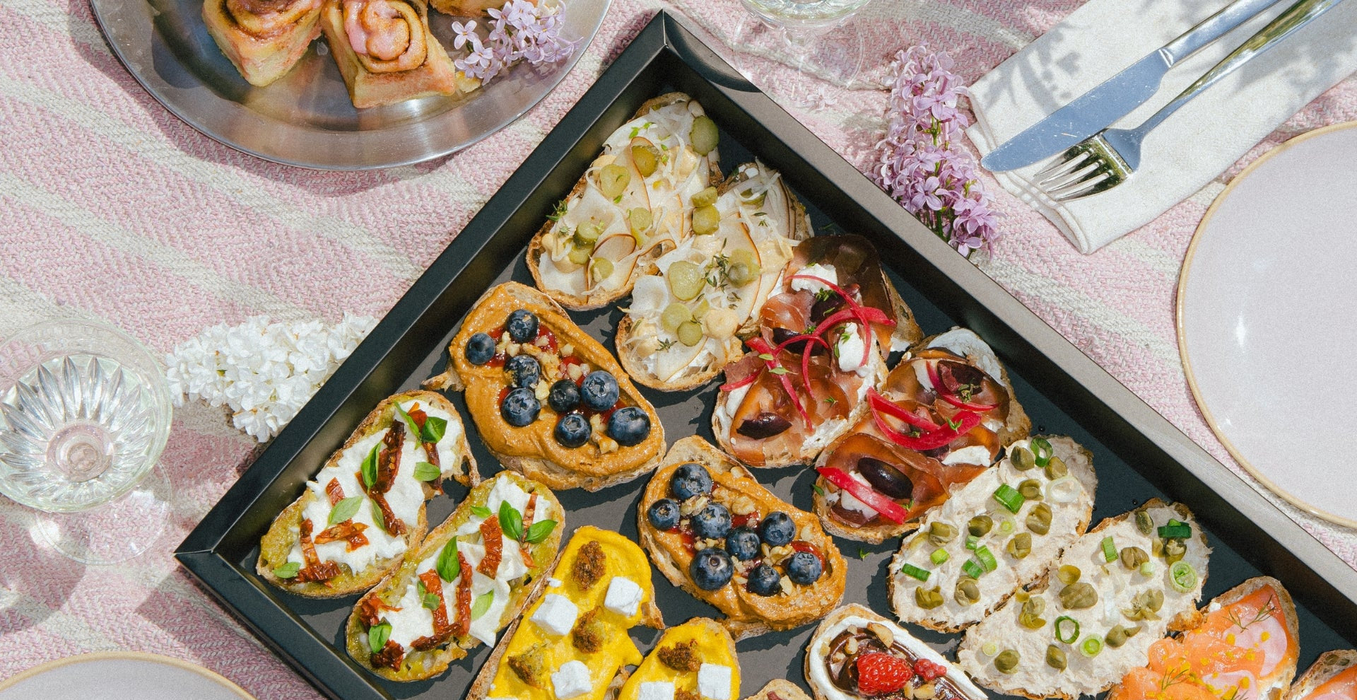 Lass dir belegte Brötchen, Brunch-Boxen, Bagels, Kuchen und Zimtschnecken zu dir nach Hause oder ins Büro liefern.
